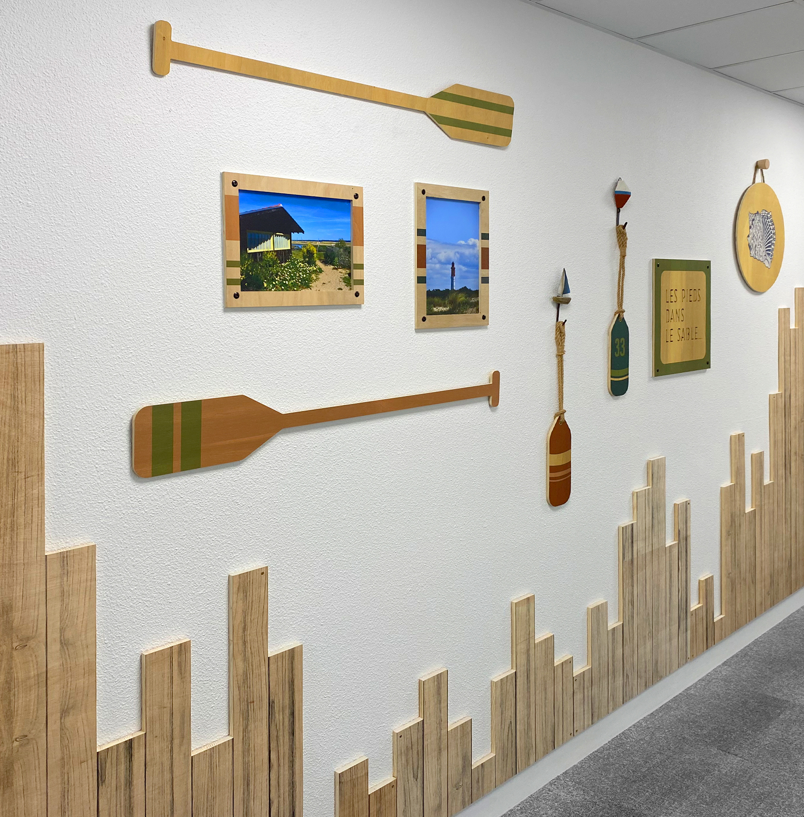 Our creative teams have used wood, triptych frames and stretched canvas to add volume and relief to the walls. The decoration, made from recycled materials, illustrates our commitment to protecting the environment.