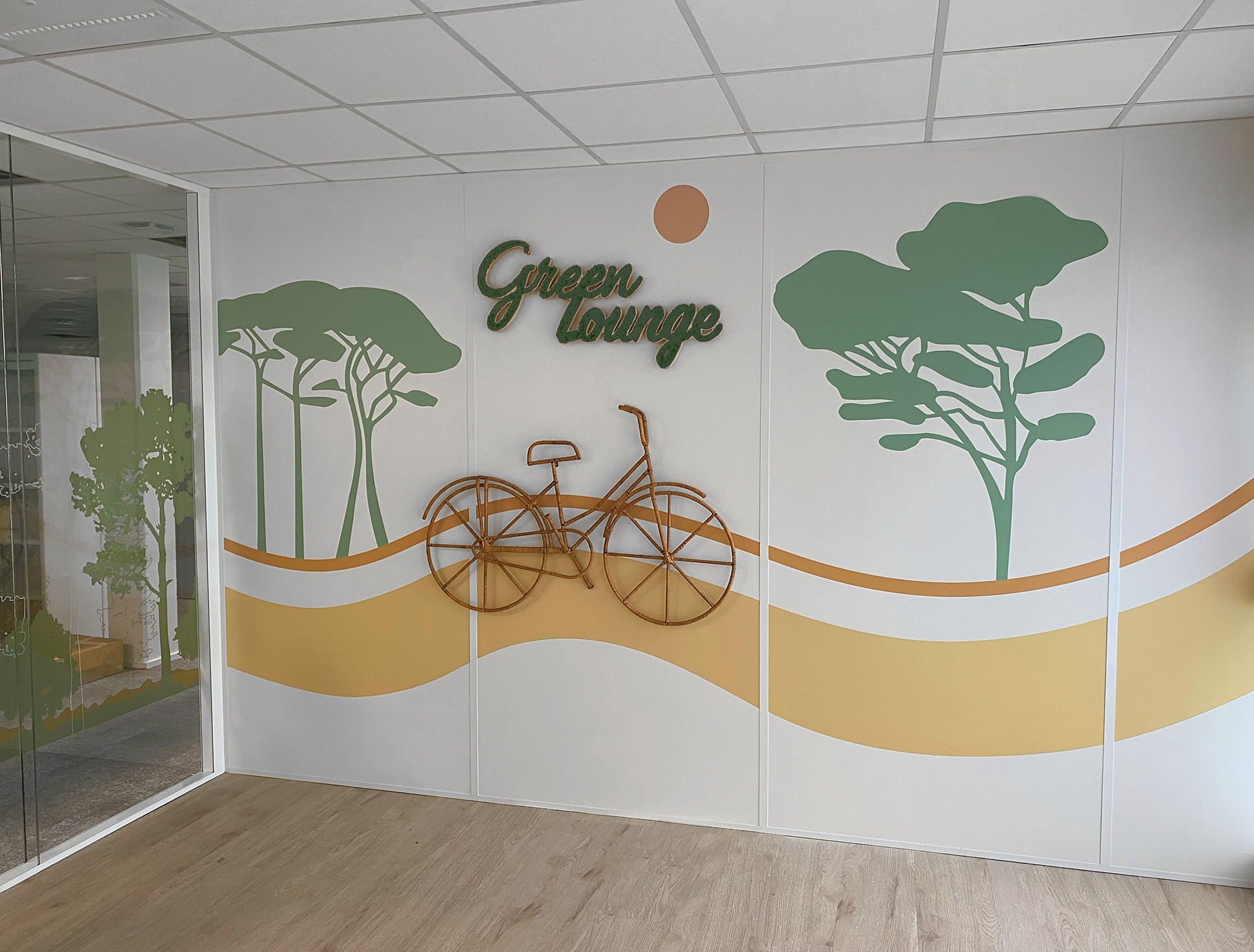 Every detail, from the wall objects to inspirational words like "climate" and "recycling", reinforces the importance of preserving our planet while creating a pleasant workspace for employees. We're proud to have contributed to this innovative and eco-responsible project!