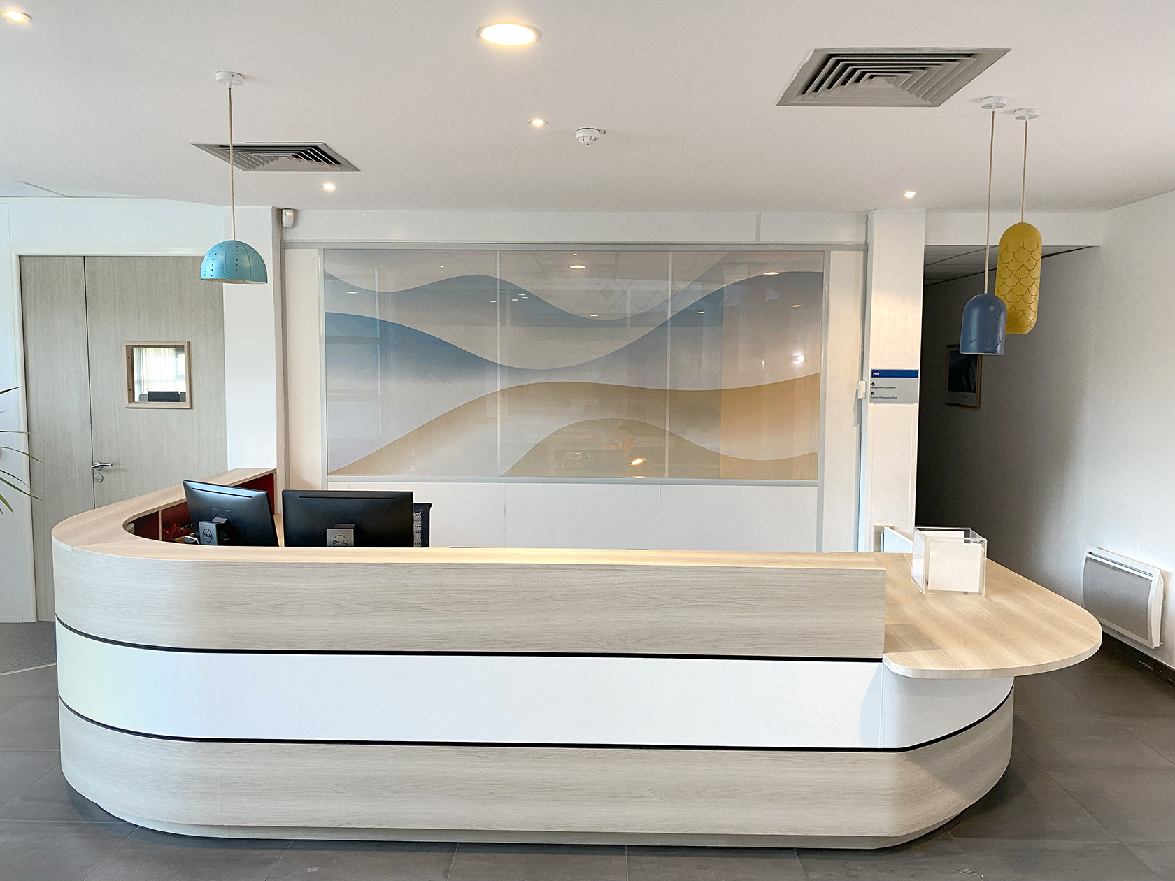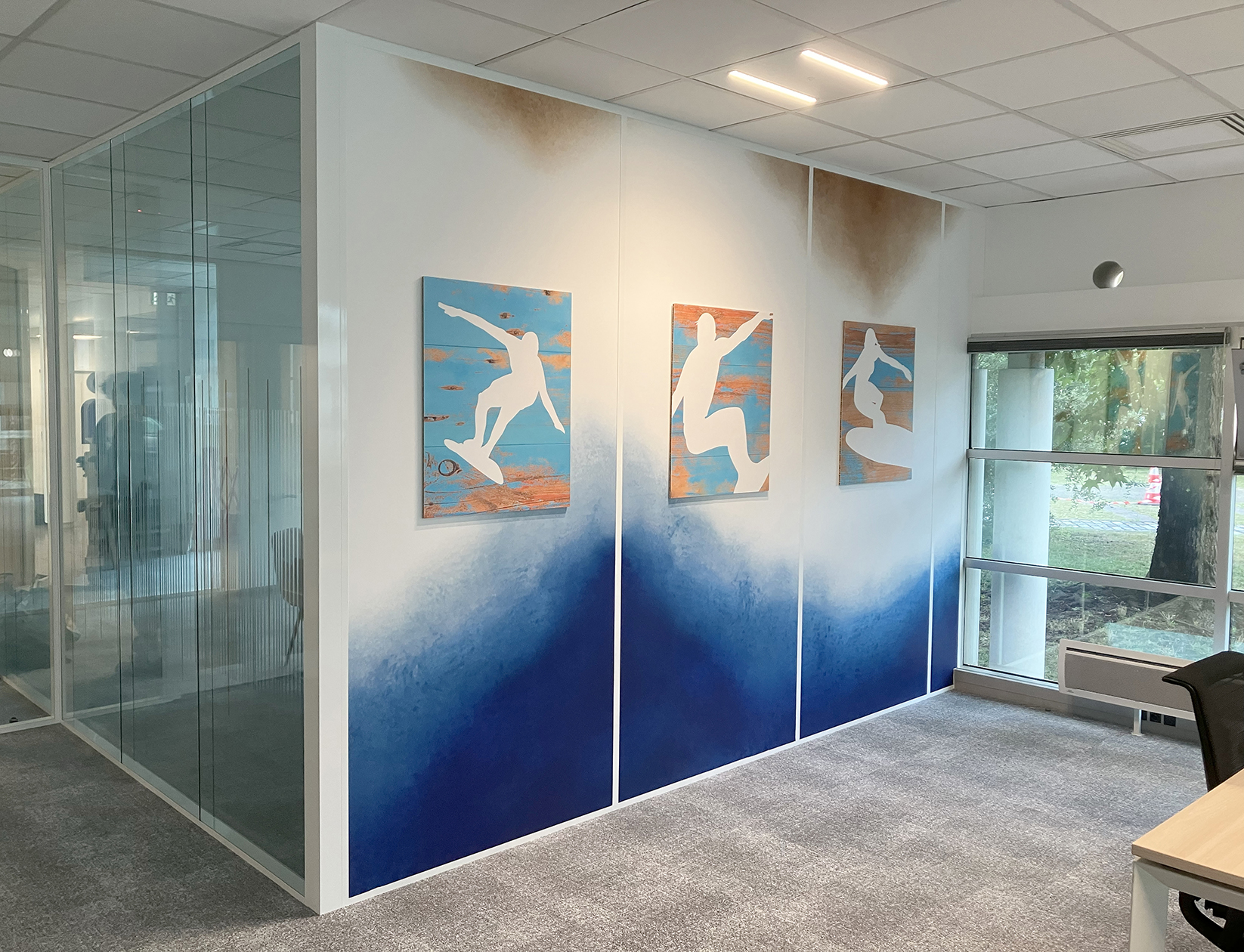 After the success in AngersOnce again, this tertiary sector group has entrusted us with the task of personalising its Pessac site, bringing to bear our expertise in decoration, bespoke printing and project management to ensure smooth, creative implementation.