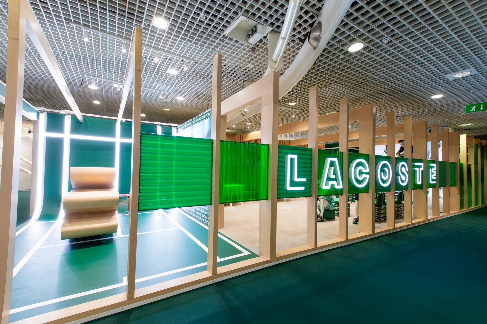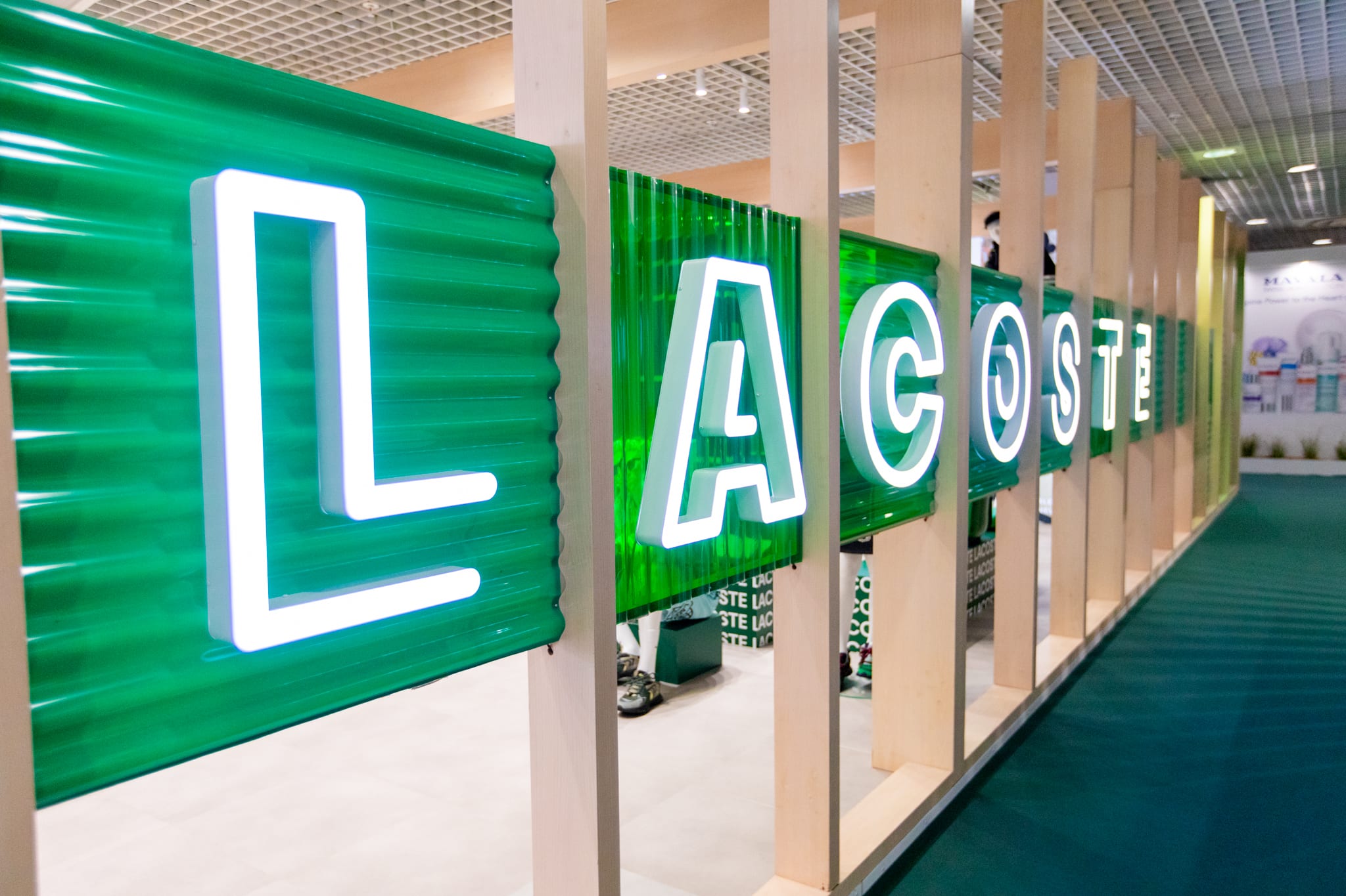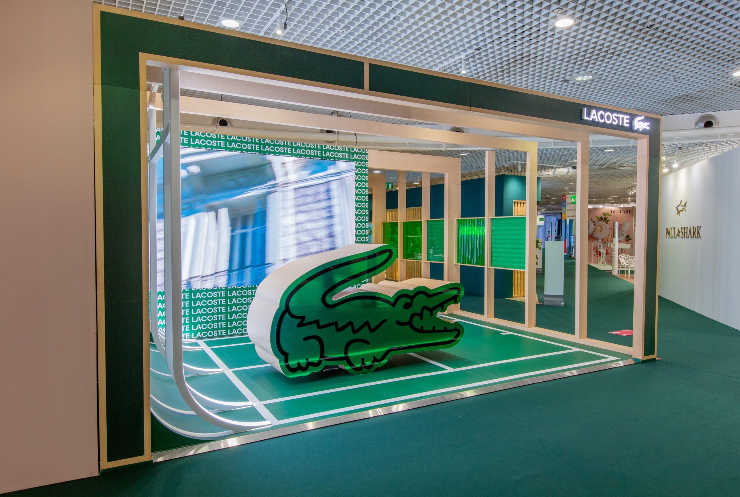 The Lacoste stand presents the concept of the boutiques that will be found in airports. For next season, the brand has come up with a design inspired by tennis, the sport with which it has a strong historical link.