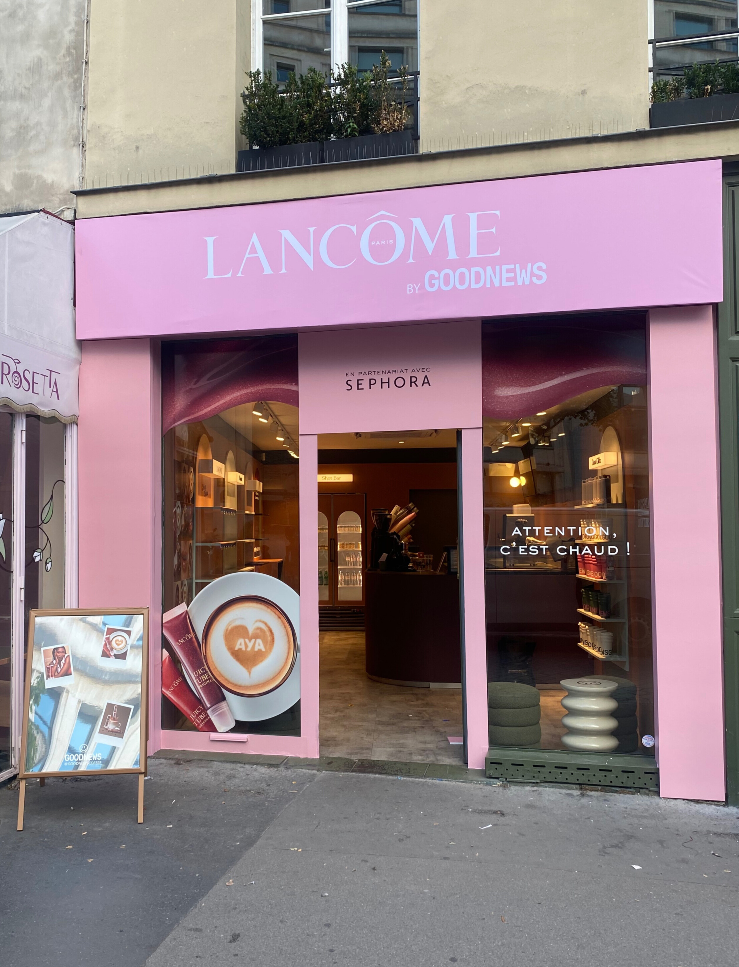 De Marionnaud à Lancôme, en passant par Tommy Hilfiger, chaque projet relève d’un même défi : habiller complètement les cafés GoodNews Paris, à l’intérieur comme à l’extérieur, tout en maintenant l’activité des lieux et en garantissant un impact visuel maximal.