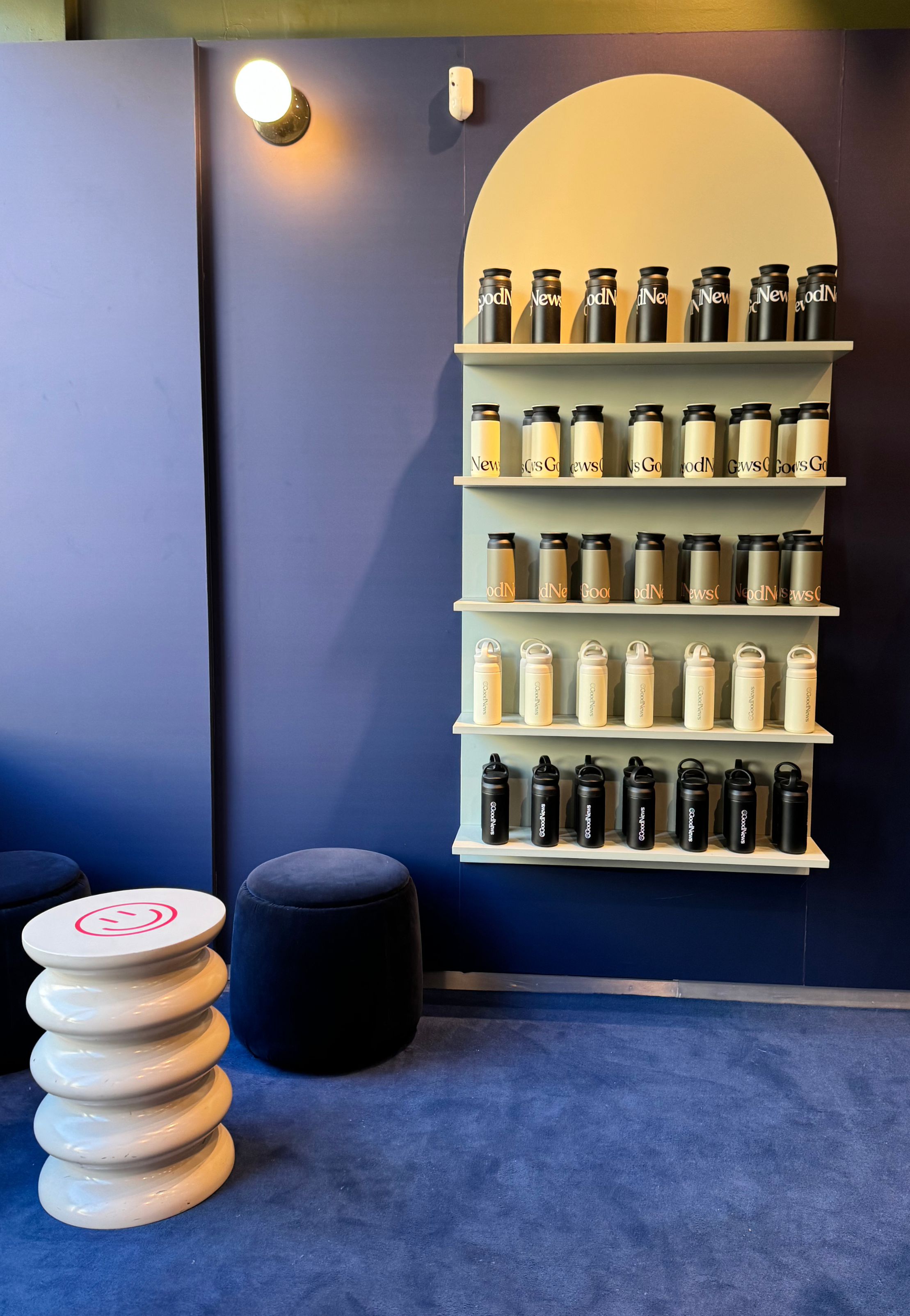 Pour un pop-up de 4 jours, nous avons entièrement transformé le café GoodNews à Paris avec un habillage 100 % brandé. En quelques heures seulement, le lieu a été métamorphosé tout en gardant le café ouvert pour les clients.