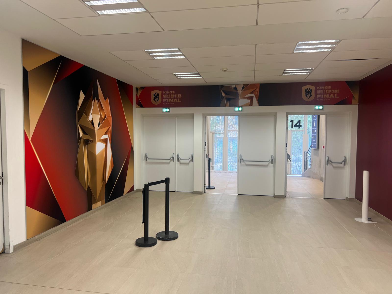 • Mise en scène des espaces VIP, entrée des joueurs, zone mixte, VAR room…
