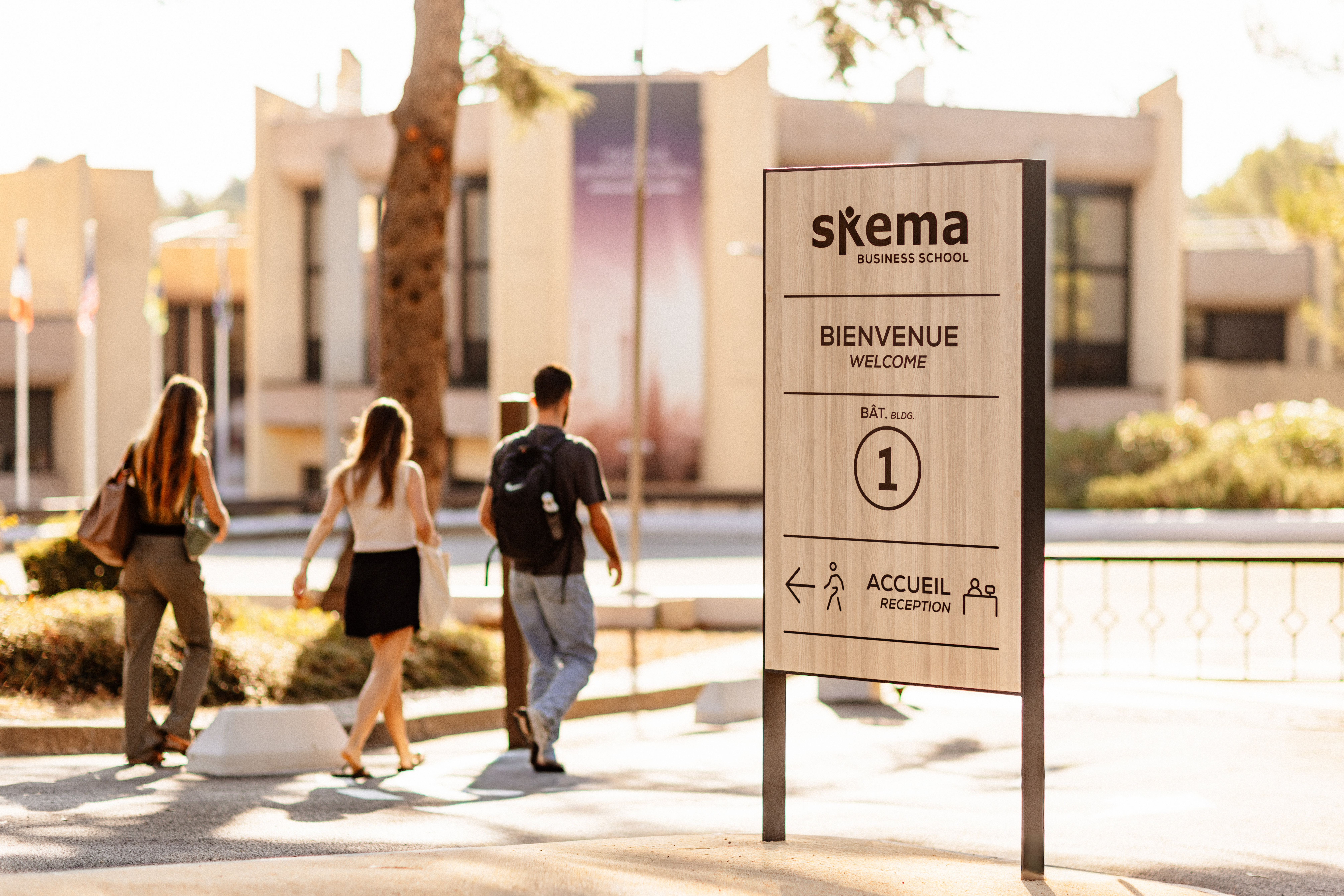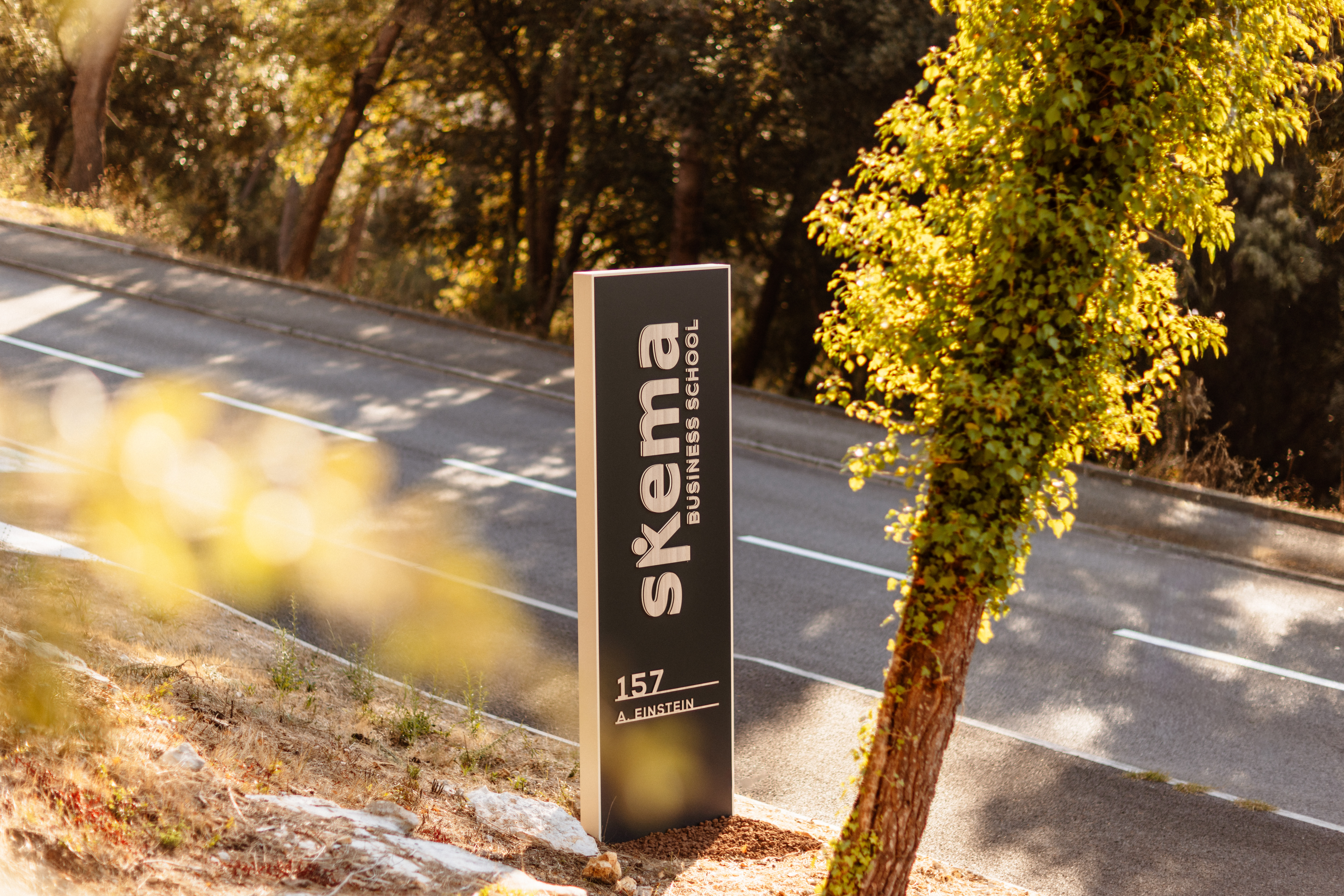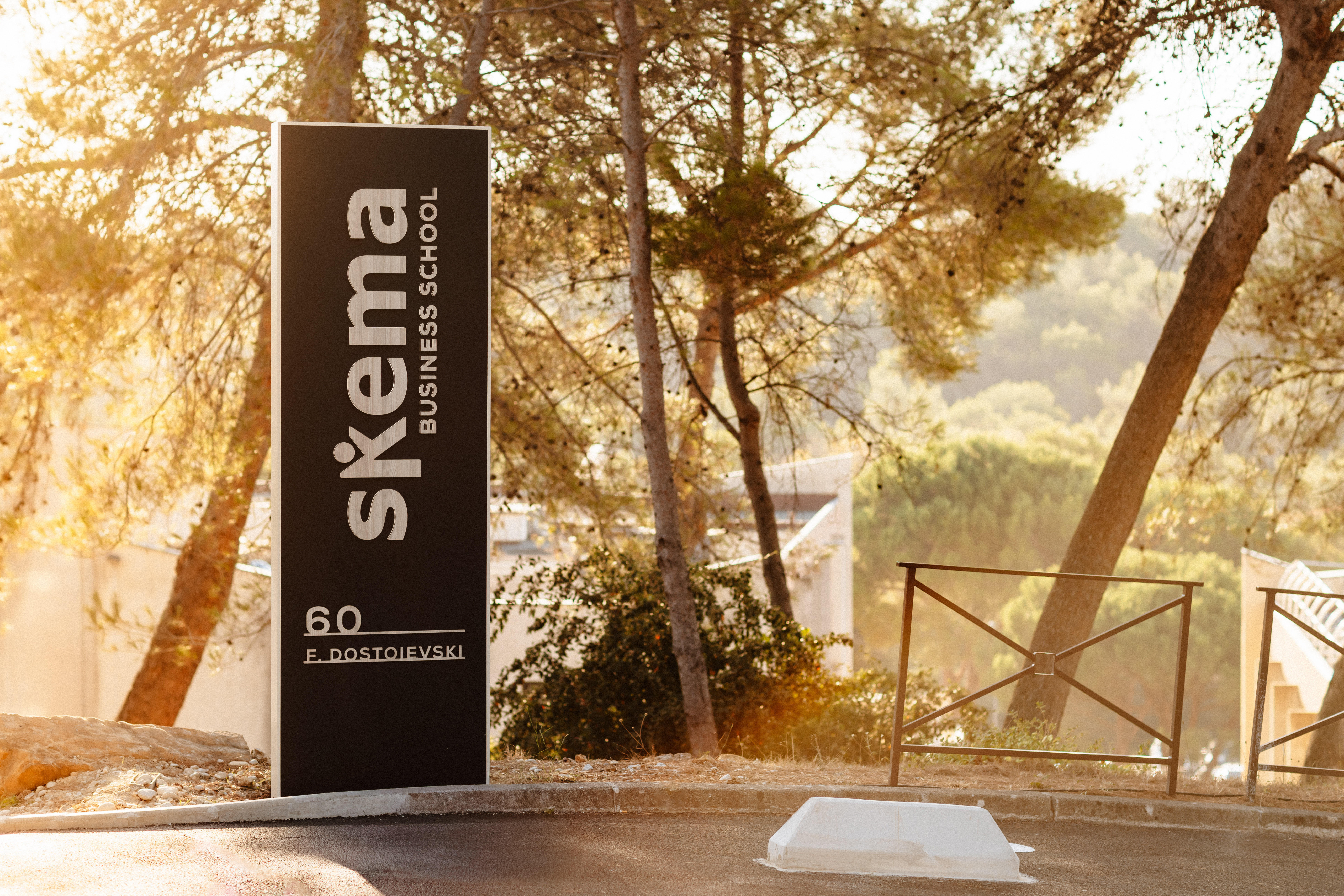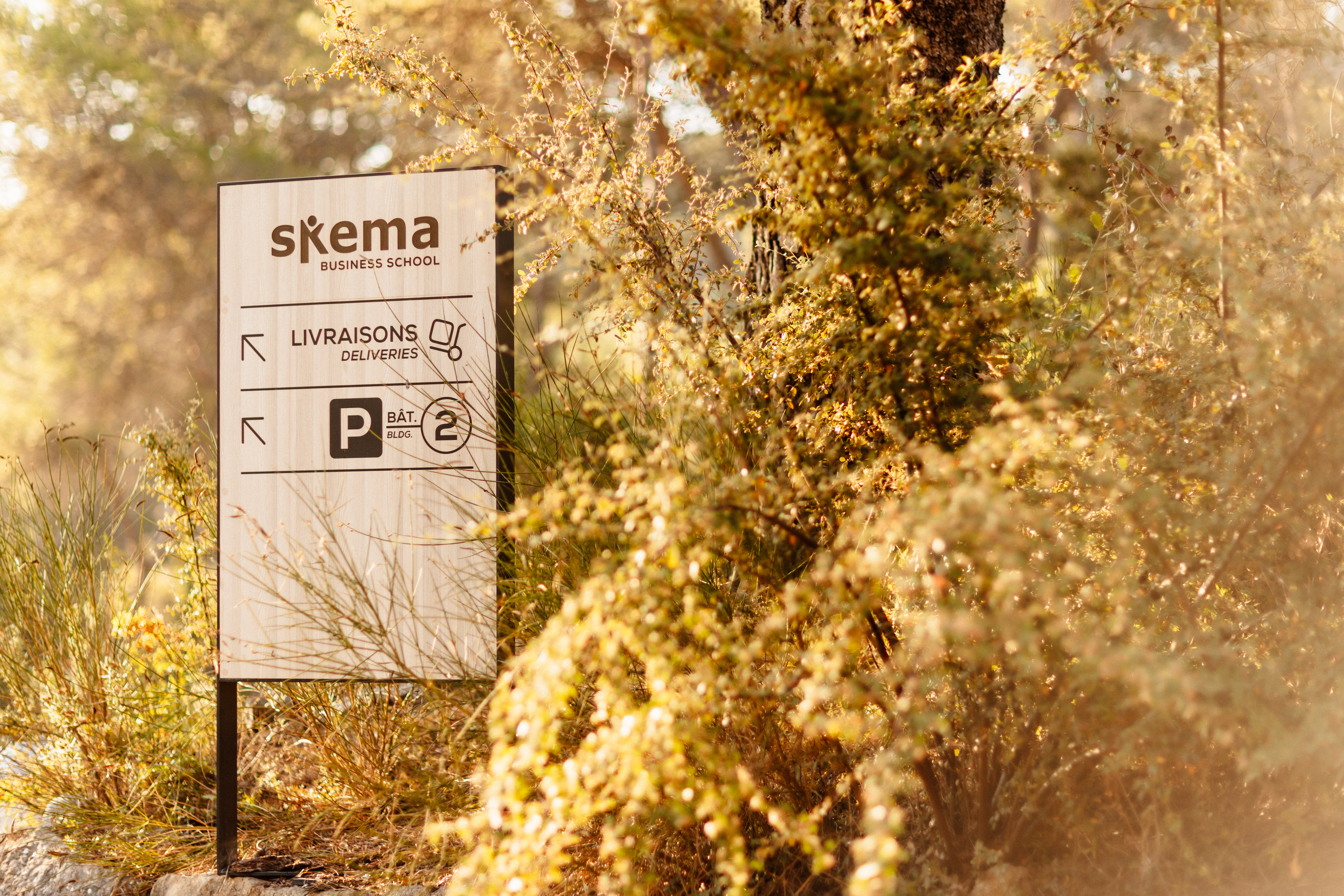 Le campus Sophia Antipolis de SKEMA Business School prend un nouveau souffle visuel. Entre nature et modernité, le parcours extérieur se transforme grâce à une signalétique pensée pour guider et harmoniser l’espace. Modernité, lisibilité et intégration à la pinède étaient au cœur du projet.